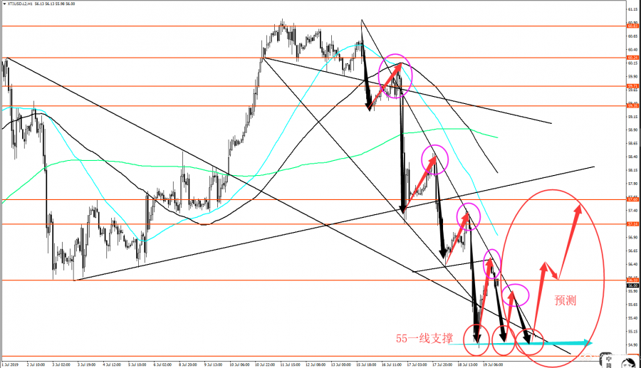 日内原油依然存在交易机会,今日布局56.4空单已经进场,那么对于晚间,我依然看原油走空,从技术面角度出发,原油就是一个大空头,55不能够企稳反弹,原油甚至可以继续下跌至53附近,目前就是原油就是一个大空头,盘整上不去必将走空!