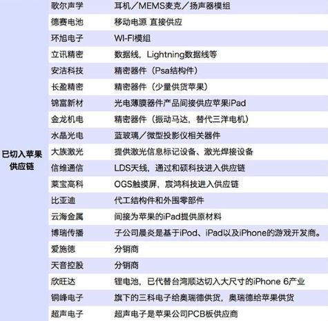 苹果手机在大陆的供应商